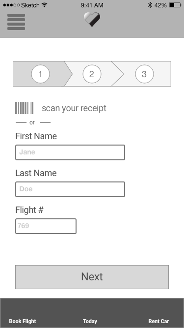 In this iteration we went back to using Southwest's original home screen with slight modifications. Now when the app is opened users are prompted to scan their receipt, automatically finding their reservation information and bag-tracking information.