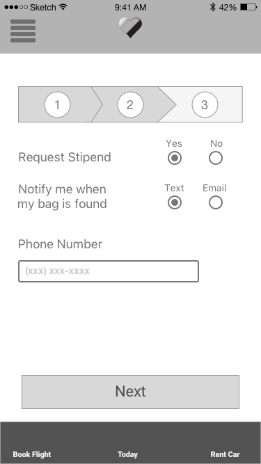 We found that participants gave us good feedback on what kind of information they would expect to be collected as they went through the reporting process. We had a participant mention that if they were traveling they would want to know that they could give a delivery address for the luggage through this reporting process. Our design change here addresses that concern.