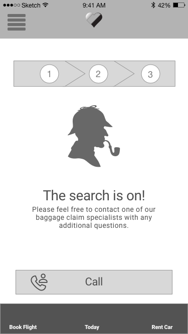 We tested our initial wireframes and made several key improvements to our design. We used a combination of an online user testing platform, guerilla user testing, and scheduled in-person tests. Users were given two different scenarios for the test. The first was to be under the assumption they had checked in via the app and were tasked to track their bags in the app because they were worried about their connecting flight in Atlanta. The second was to negotiate a 'baggage alert' notification and the following reporting process. The insights we pulled from these tests informed our design decisions for the second iteration.