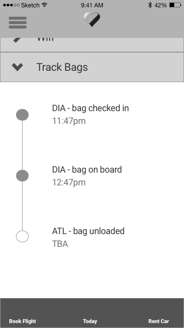 We realized that regardless of a user's persona, the user is very likely to use a kiosk screen to check their bags in or in other cases is guided through the kiosk process by an attendant. By leveraging these screens we were able to initiate a dialogue with the user and help him/her understand the bag-tracking feature available in the app.